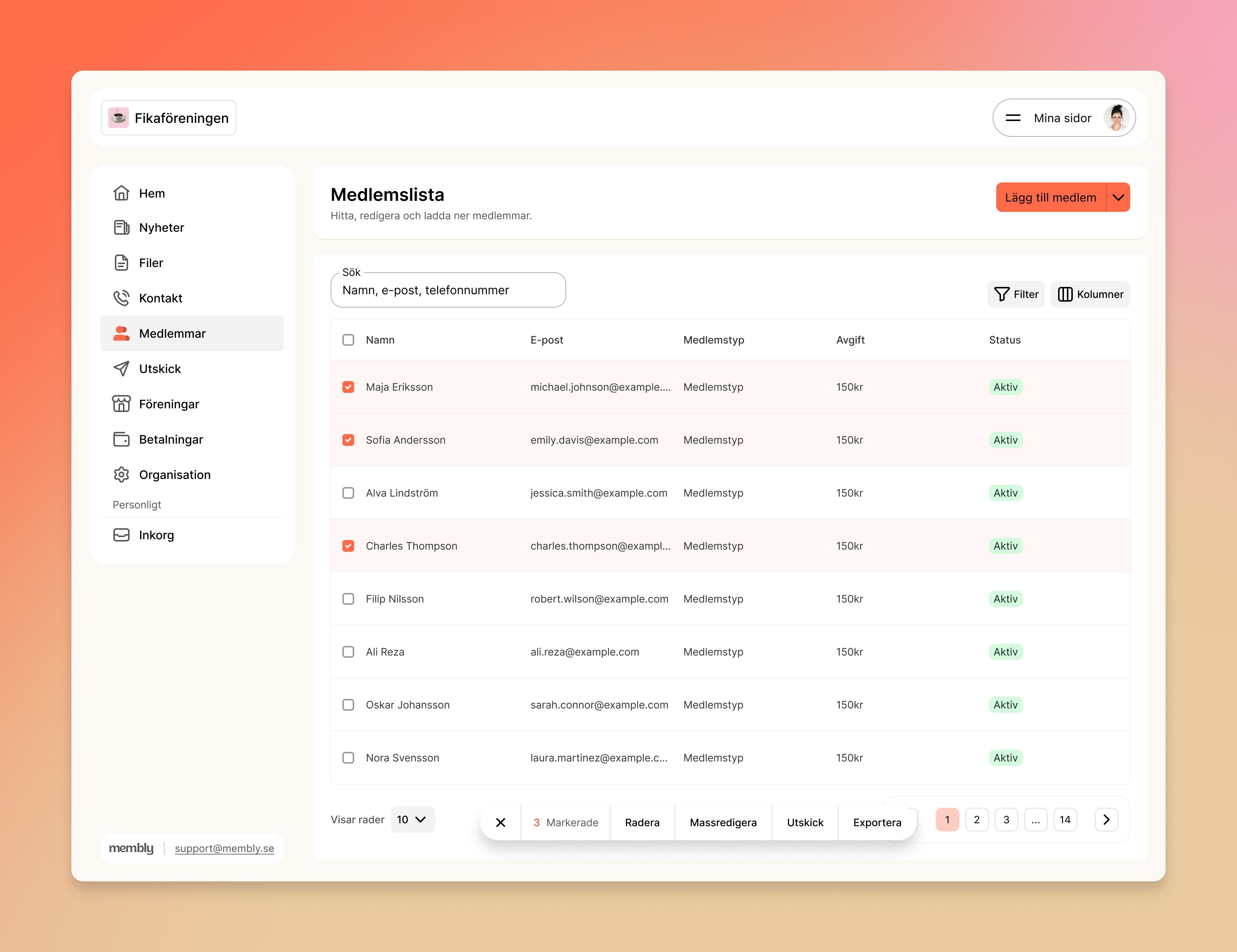 Vi erbjuder ett säkert, smidigt och tillgängligt sätt att driva er förening eller ert förbund. Med vår plattform får ni stöd i hela det administrativa arbetet – från medlemshantering och utskick till betalningar och filhantering.